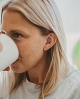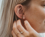 - Paired with our small bar, rounded triangle, and bird stud earrings