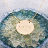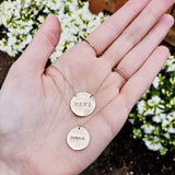 Handmade mama necklace in uppercase or lowercase font on 3/4" coin